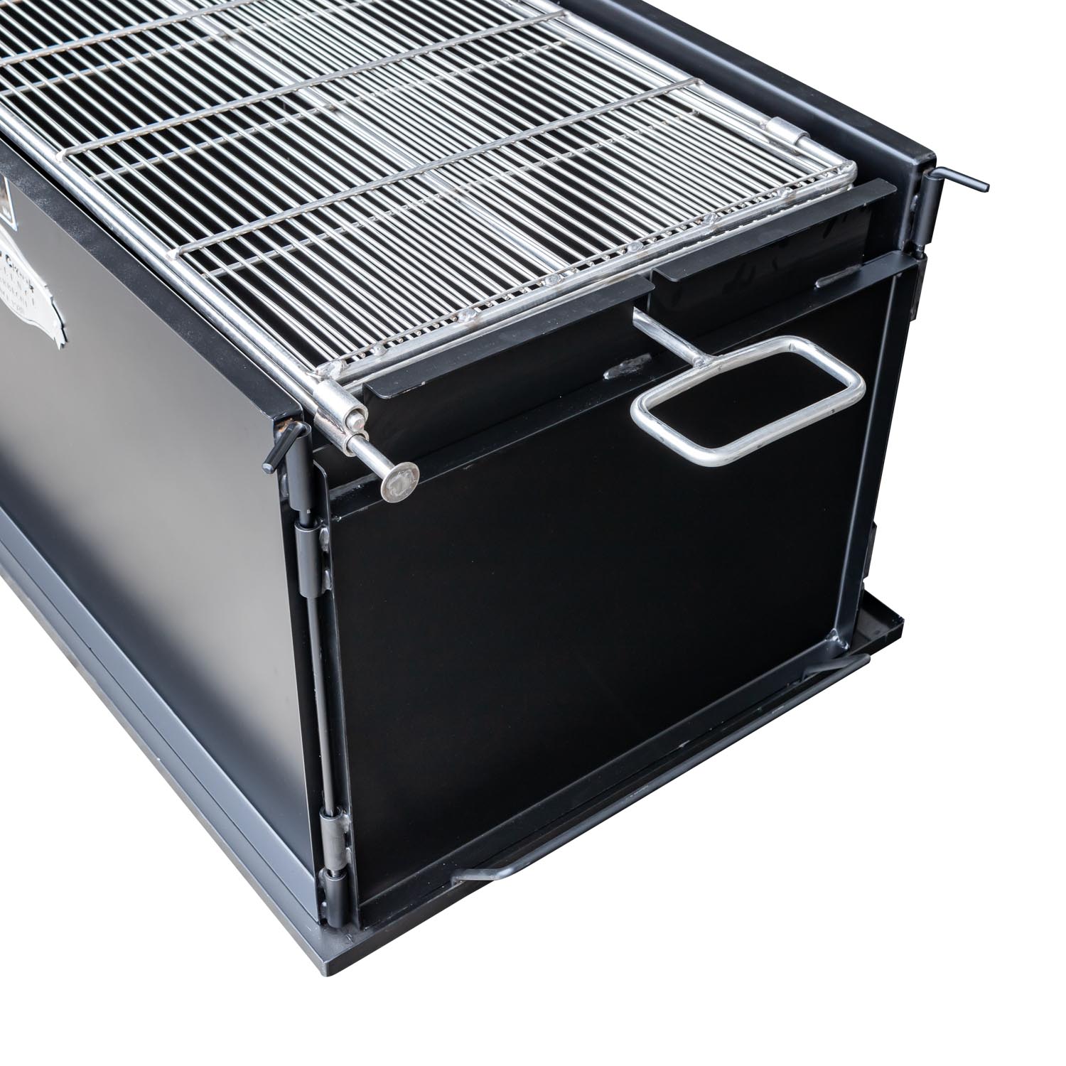 Don’t have enough space in the garage for a large grill? Need to transport the grill in your SUV? The BBQ42C chicken Cooker has the same grate size as the BBQ42 Chicken Cooker and holds 40 lbs. of chicken (1 case of legs and thighs), but knocks down to 56″ x 28″ x 6″. You can even set these collapsible grills side-by-side for additional capacity.