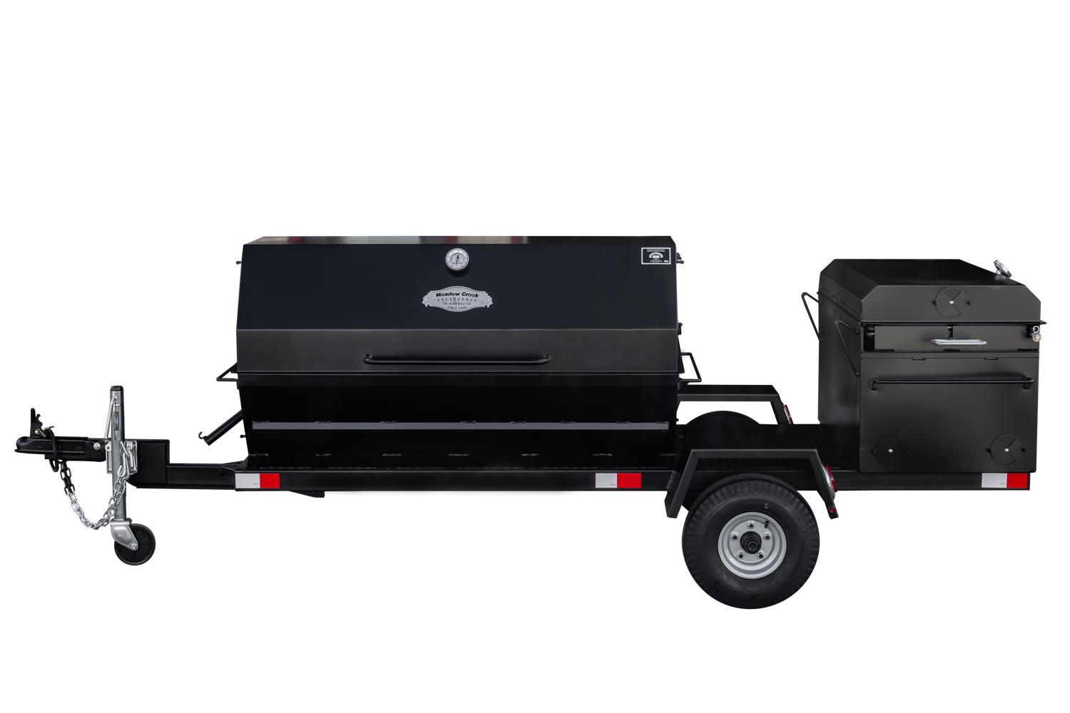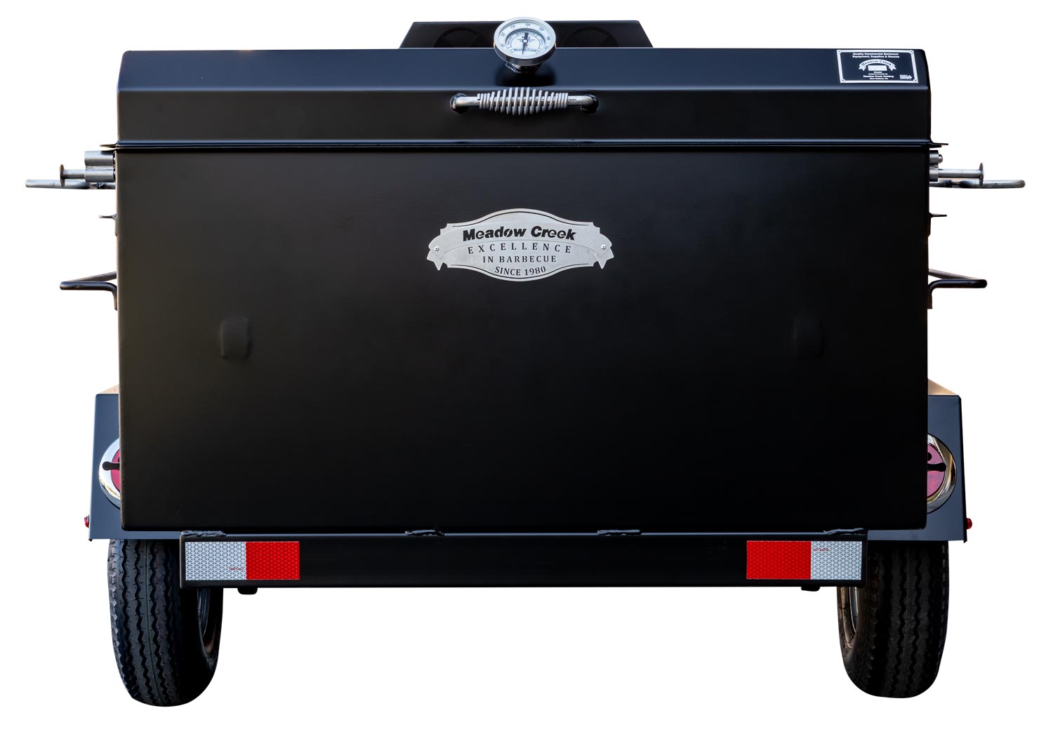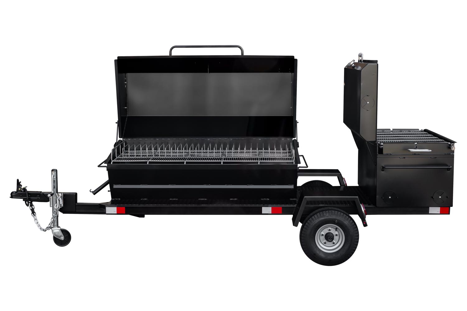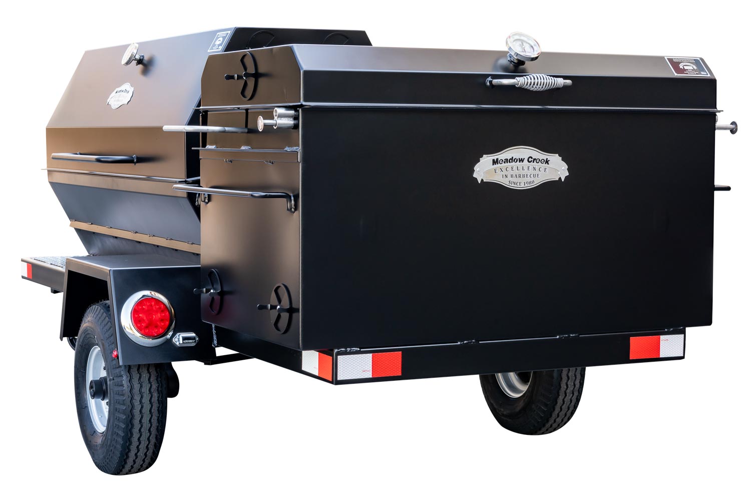 This unit is charcoal/wood-fired and features the PR60 Pig Roaster. The standard layout has the BBQ42 in the back facing the rear of the trailer. Add 10% to the base price for alternate layouts, such as BBQ42 and Pig Roaster in parallel.