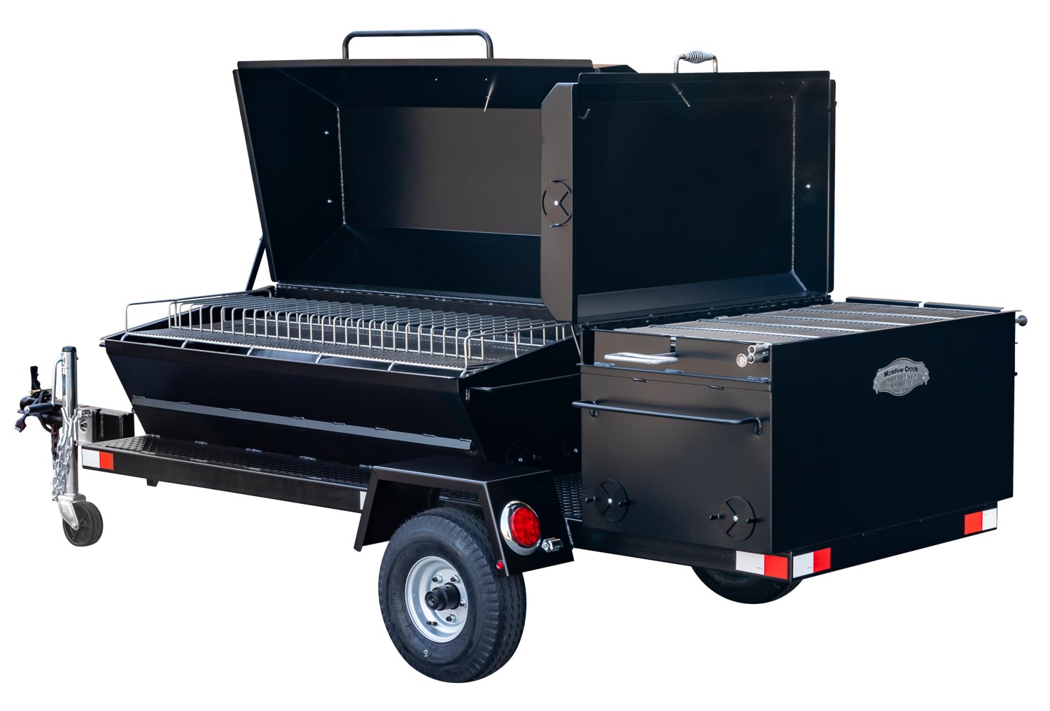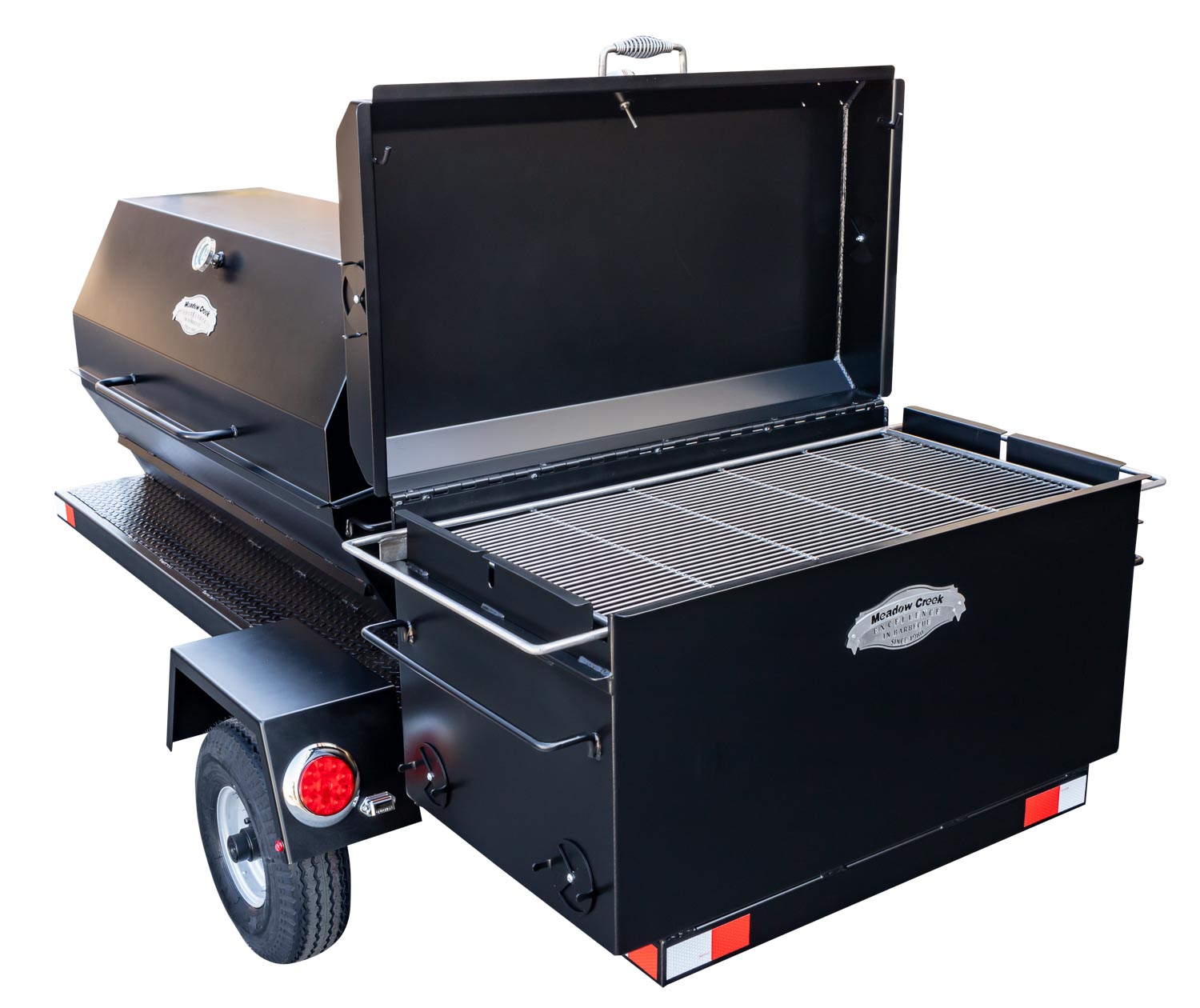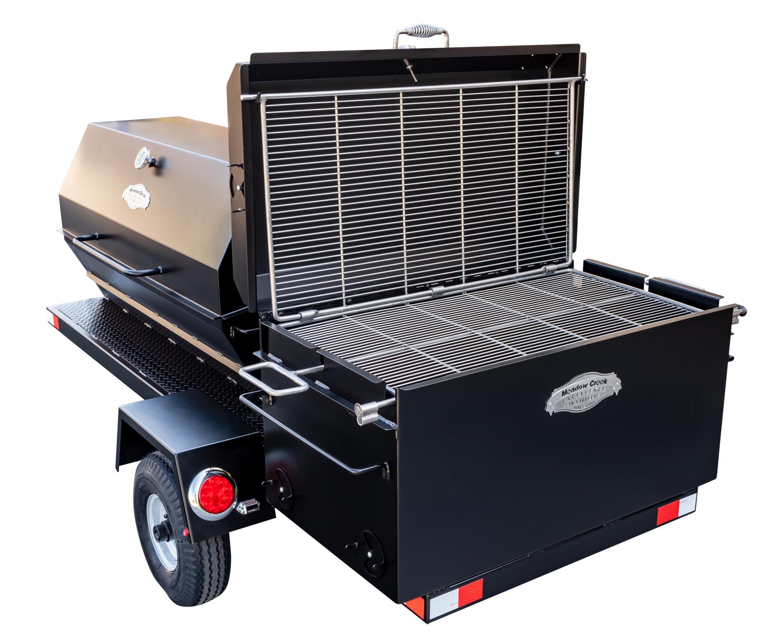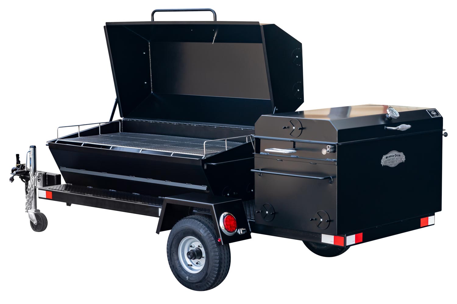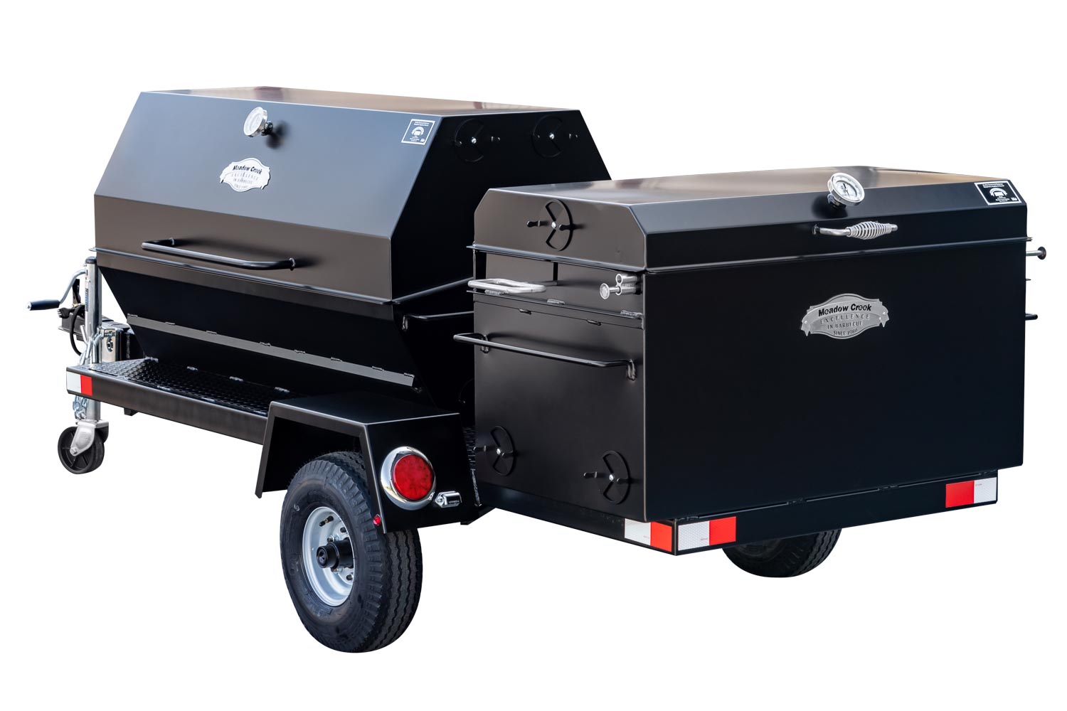 This unit is charcoal/wood-fired and features the PR60 Pig Roaster. The standard layout has the BBQ42 in the back facing the rear of the trailer. Add 10% to the base price for alternate layouts, such as BBQ42 and Pig Roaster in parallel.