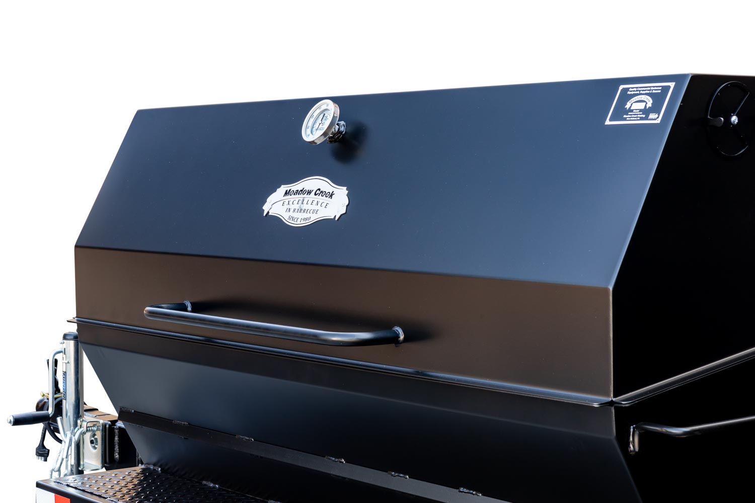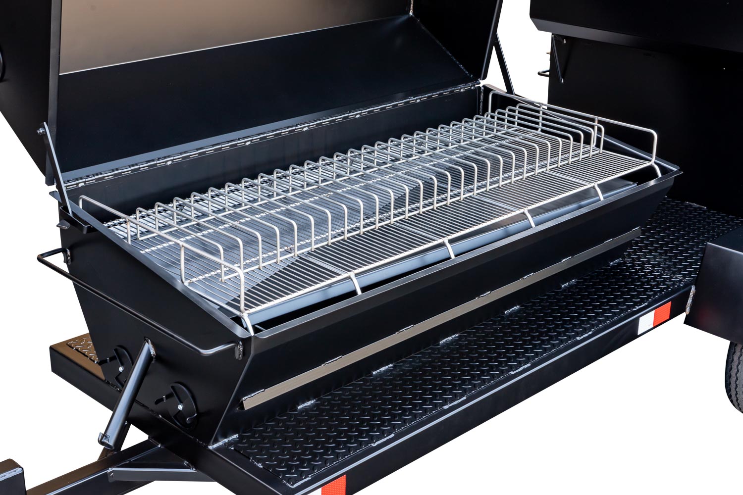 The Caterer’s Delight trailer has a mounted Pig Roaster and a BBQ42 Chicken Cooker. The pig cooker is perfect for smoking whole hogs, brisket, pork butts, and more. The BBQ42 Chicken Cooker with double-sided grates makes cooking chicken for a crowd fun and easy! Raise the fire with a charcoal pan insert for steaks, hamburgers, and other grilled food.