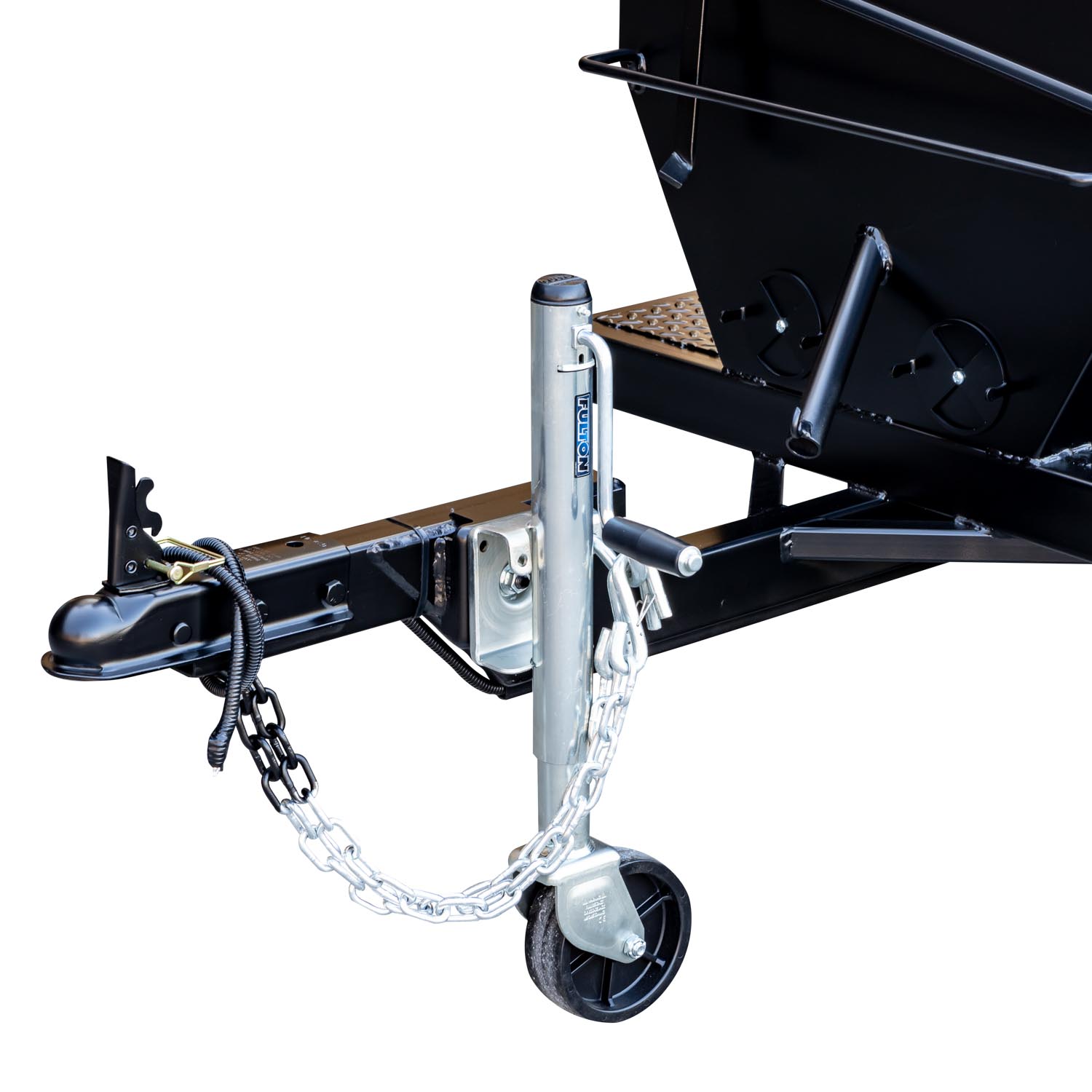 Tubular trailer frame with 2” ball hitch and safety chains, heavy-duty wheel jack, rubber torsion axles, road-worthy tires, and DOT-compliant flush-mount LED lights, reflector strips, and VIN plate. We are a licensed trailer manufacturer and can provide a certificate of origin for trailer models.