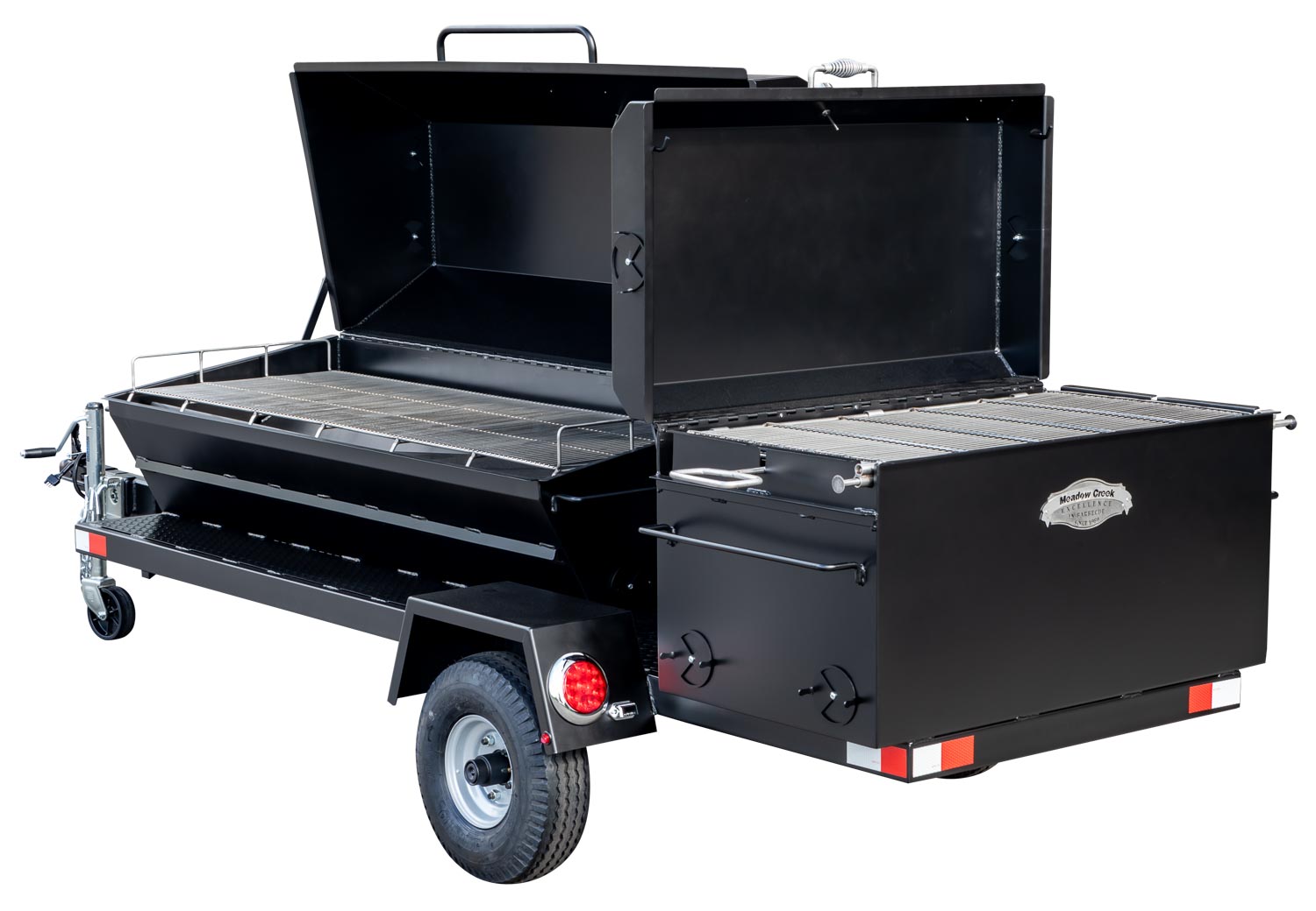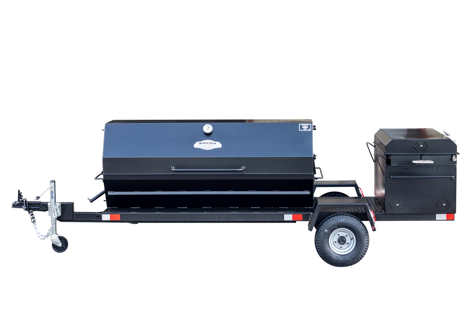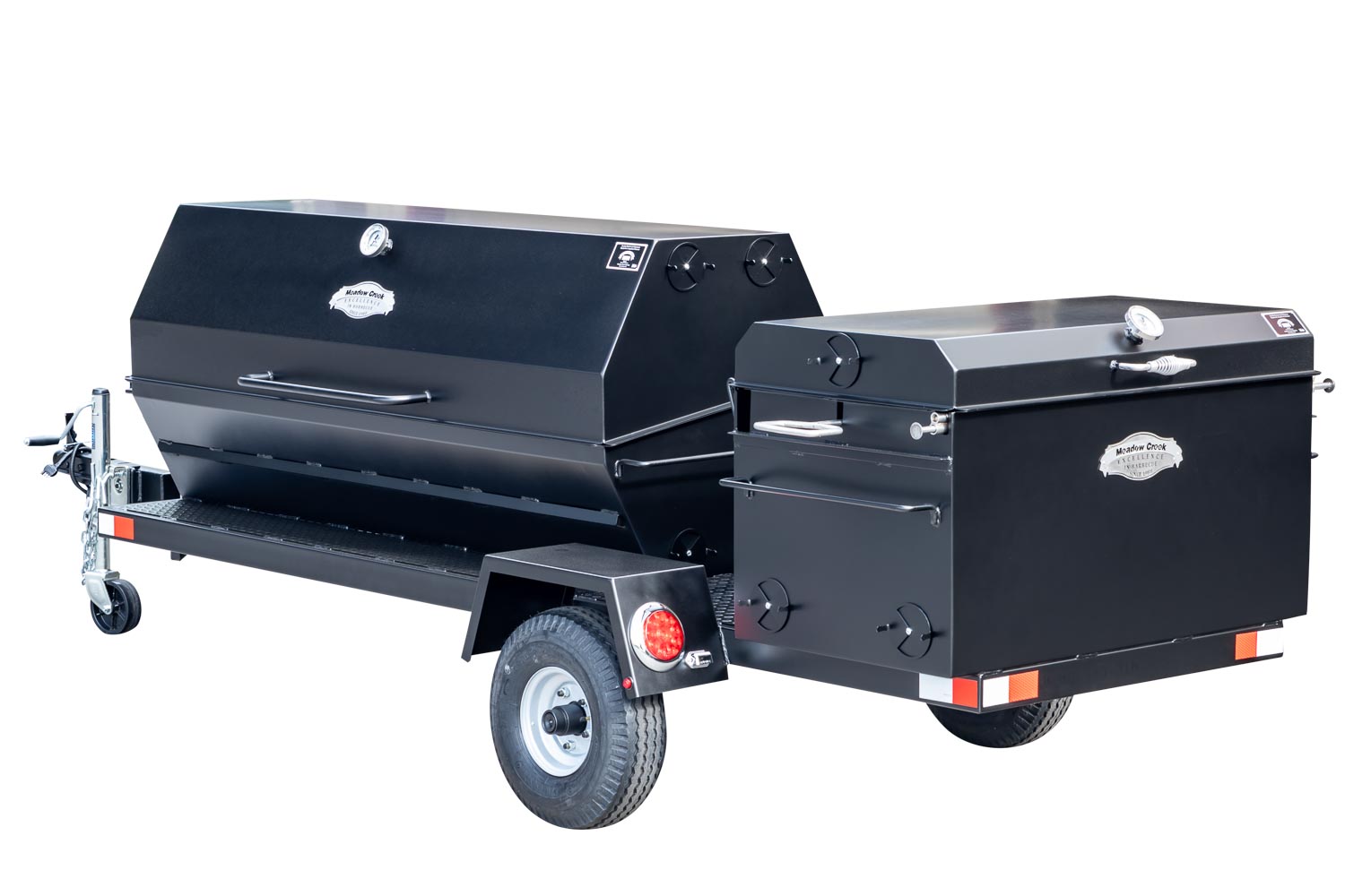 This unit is charcoal/wood-fired and features the PR72 Pig Roaster. The standard layout has the BBQ42 in the back facing the rear of the trailer. Add 10% to the base price for alternate layouts, such as BBQ42 and Pig Roaster in parallel.