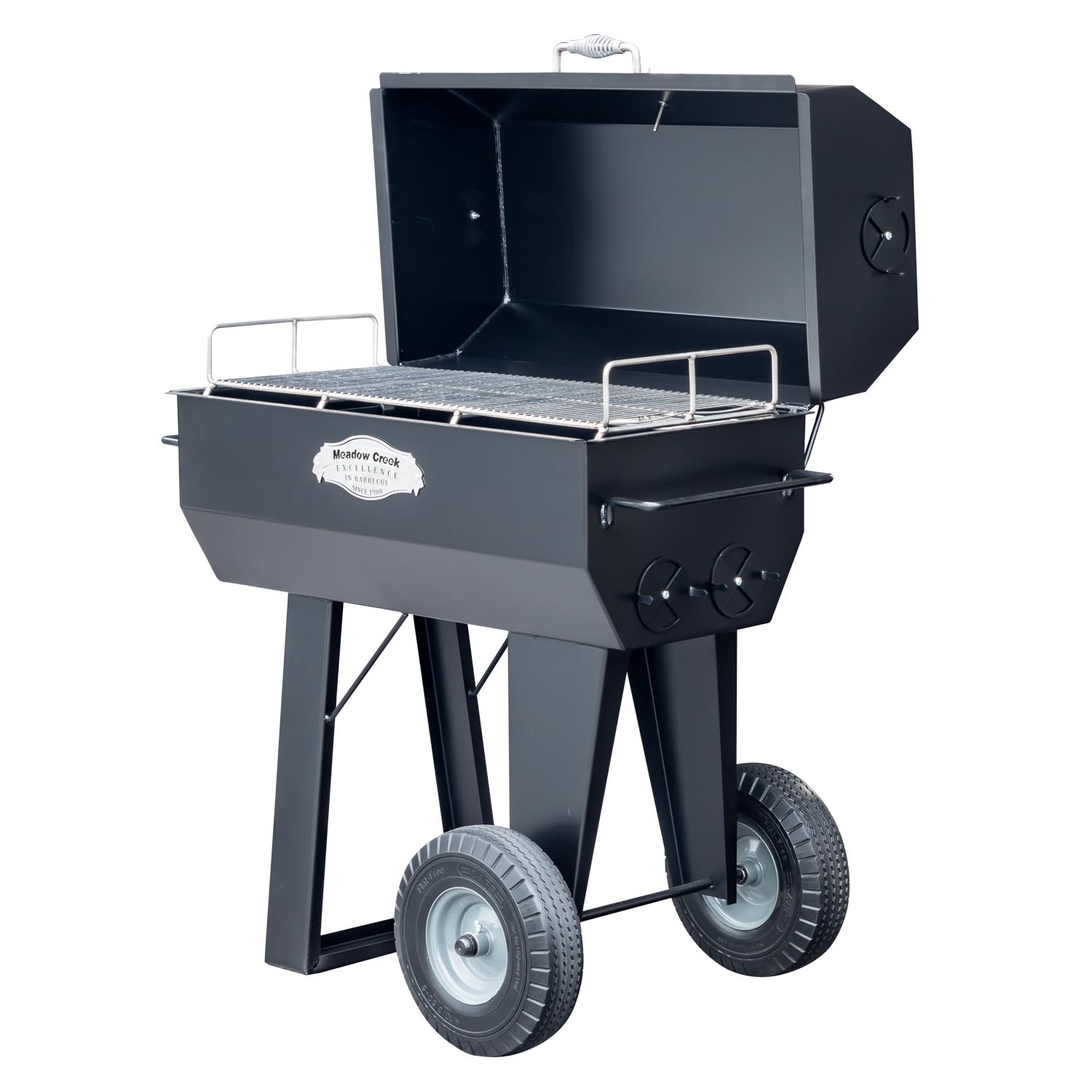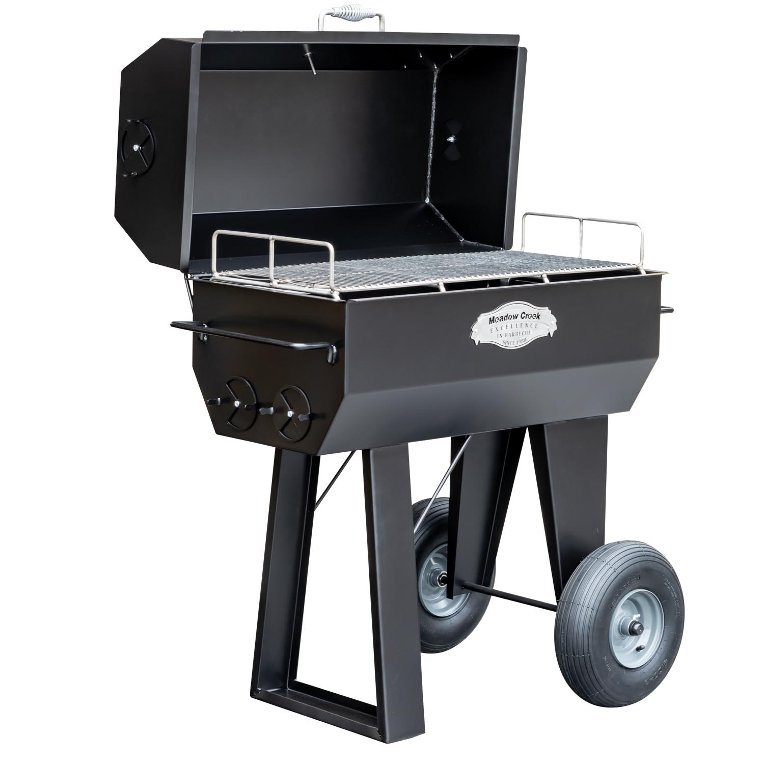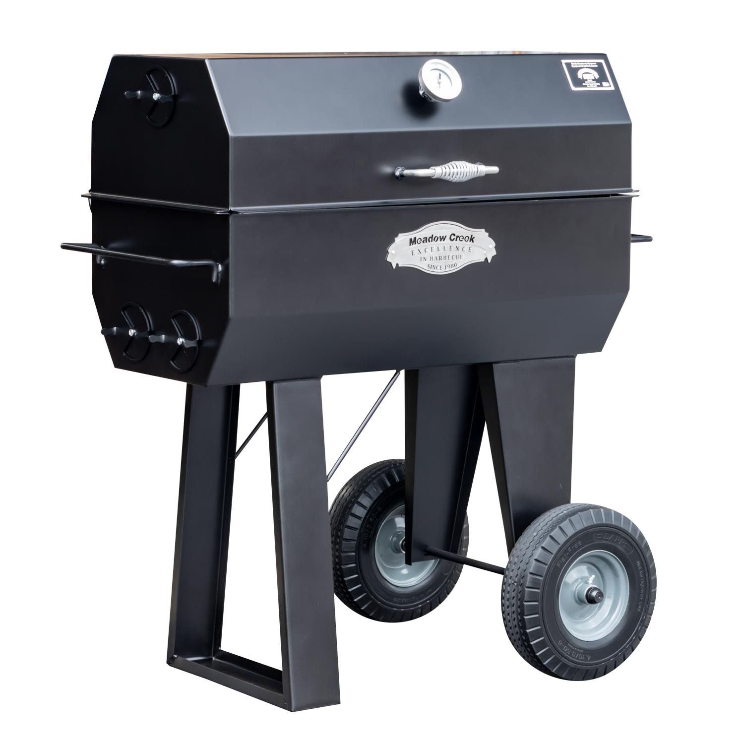This PR series backyard BBQ smoker is one of Meadow Creek’s most versatile cookers. It was made for homeowners who want a heavy-duty charcoal grill for direct-heat cooking that also does an excellent job of indirect “low and slow” cooking. It’s the perfect size for serving family and friends.